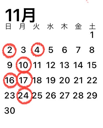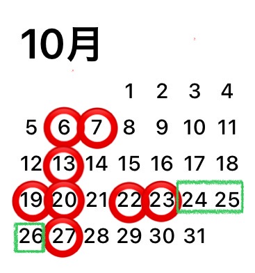 また、10月24日(金)~26日(日)の間(緑の□)は予約のみとさせていただきます。